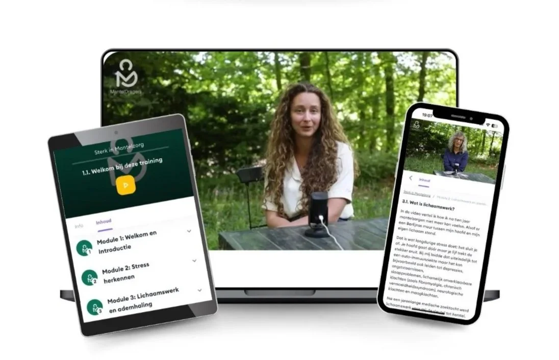 -Een veilige online community: waar mantelzorgers elkaar vinden, herkenning delen en leren reguleren in verbinding met anderen. Ook op de werkvloer moedigen we onderlinge verbinding aan omdat sociale steun en co-regulatie een bewezen rol spelen in het kalmeren van het zenuwstelsel en het versterken van herstel.